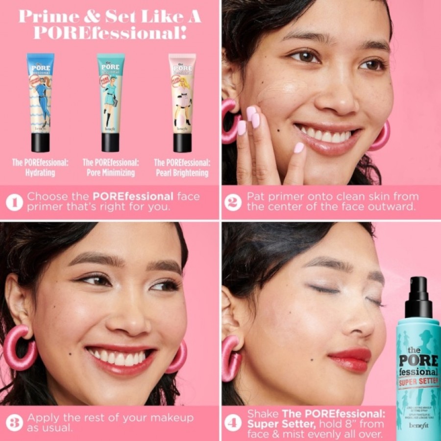 -Beauty tip: Defeat pores from day to night with the dynamic duo of The POREfessional Face Primer (sold separately) and Super Setter. Together, they deliver smooth, visibly poreless skin that stays looking fresh all day long.