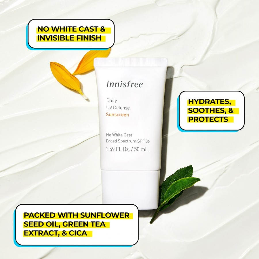 This sunscreen is infused with a blend of green tea, cica, and sunflower seed oil for three-in-one benefits; it hydrates, soothes, and protects. The lightweight formula delivers undetectable sun protection with SPF 36 while giving skin giving a fresh-looking glow.
