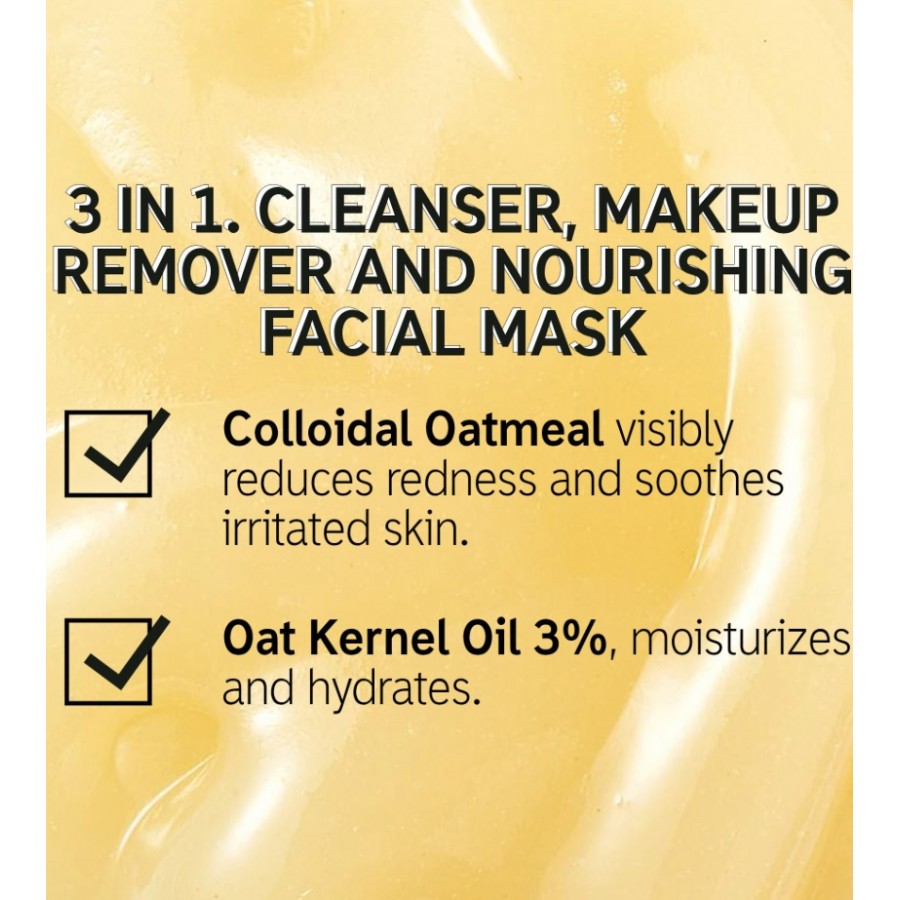 A rich cleansing balm that melts away makeup and impurities. Formulated with Oat Kernel Oil, a rich, natural Oat Oil which hydrates and moisturizes the skin. Also contains Colloidal oatmeal which contains a high level of skin beneficial natural actives, making it a must have cleanser to soothe irritated skin.