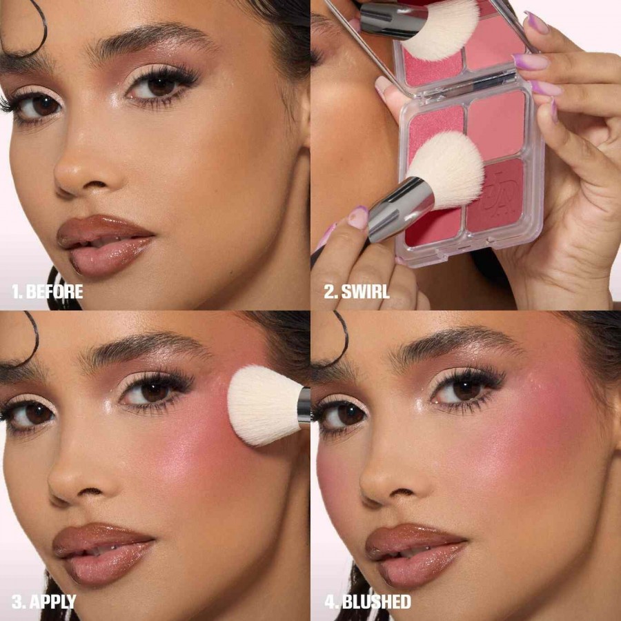 This is a limited-edition blush palette with three ultra-pigmented matte powder blushes and a highlighter—wear alone or swirl shades for an ethereal look. Designed for multiple uses, these matte blushes deliver buildable pigments for effortless color payoff, topped off with a highlighting shade for a soft-focus, blurred, and filtered finish.