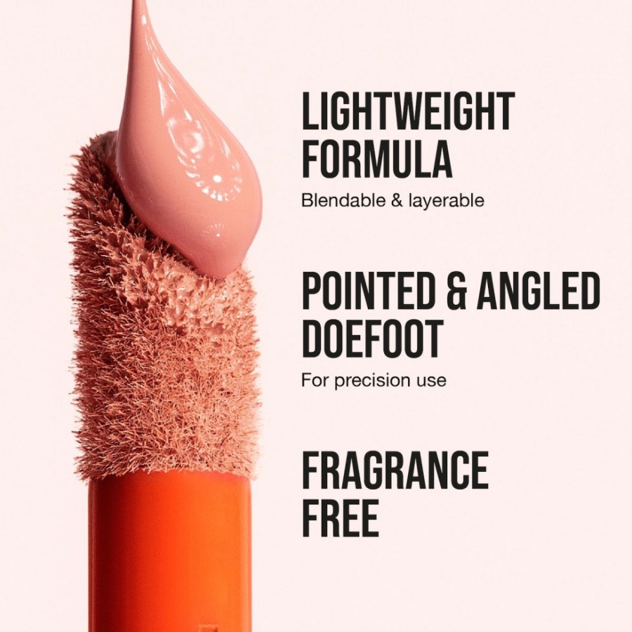 A lightweight color corrector that visibly corrects, evens, and brightens the under-eye area with a crease-, sweat-, and transfer-proof formula that blends seamlessly