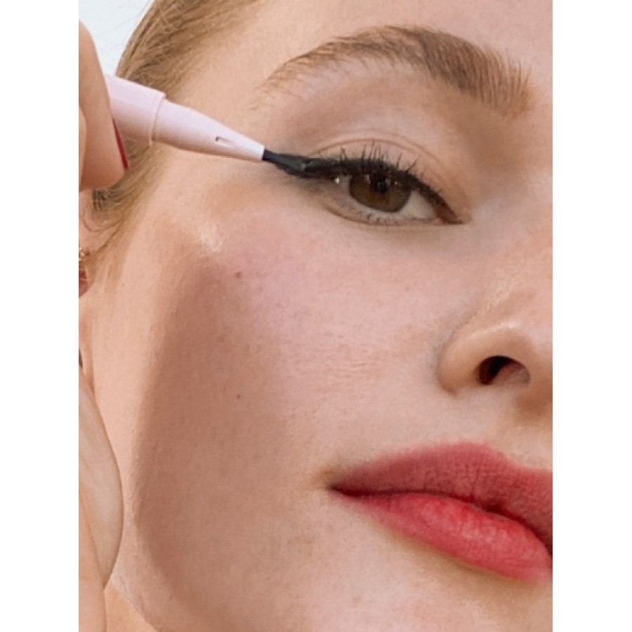 An easy-to-use black liquid eyeliner with a brush tip for precise definition, in a smudge-resistant formula. The pen’s brush tip was designed with flexible fibers that hug the curve of the lash line for easy application. Densely-pigmented, buildable formula dries quickly so it doesn’t smudge and stays put for up to 12 hours. Internal ball shaker lets the formula flow through evenly, giving you a smooth line that doesn’t drag, every time