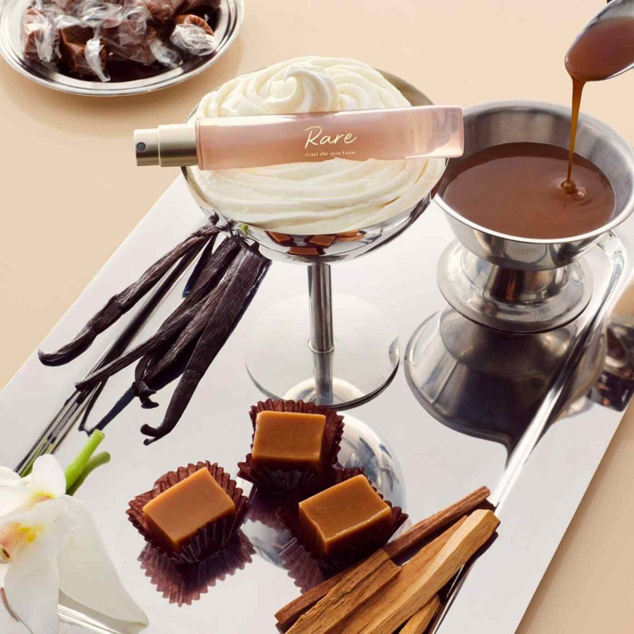 Warm and decadent with a touch of spice, this gourmand fragrance evolves with every passing moment, lingering for up to 12 hours. Caramel and pistachio give way to rich vanilla and spicy ginger, then dries down to earthy sandalwood. Pair the Eau de Parfum with Rare Fragrance Layering Balms to customize your scent.