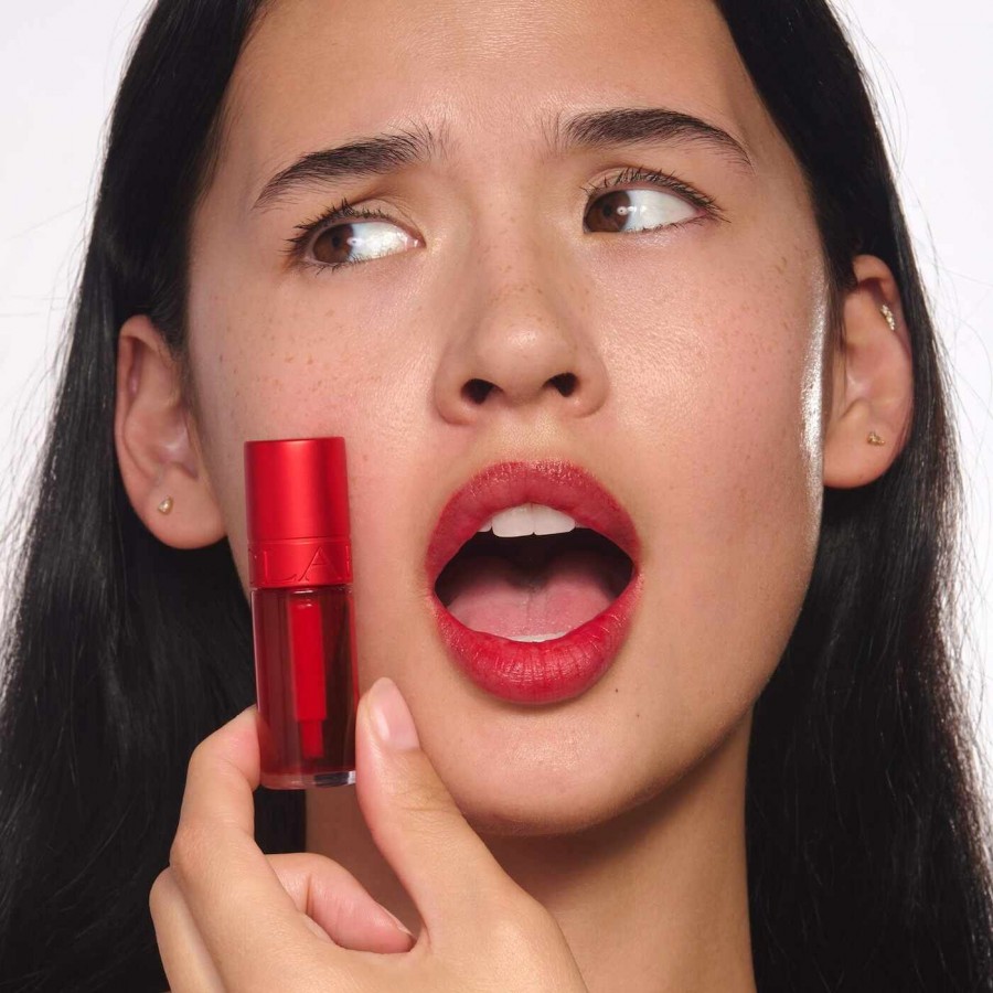 - 0.09 oz/ 2.8 mL Clarins Hydrating Water Lip Stain Kiss Proof & Matte Finish in Red Water 03 (deluxe size)