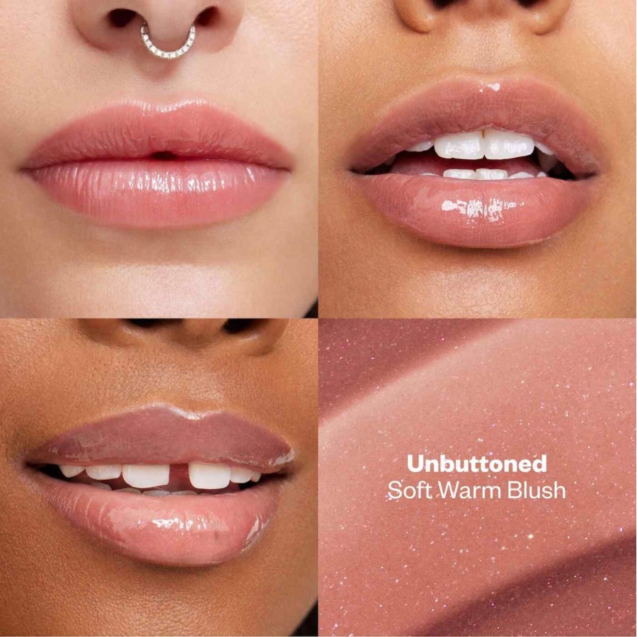 - 0.15 fl oz/ 4.6 mL Kosas Wet Lip Oil Plumping Peptide Lip Treatment Gloss in Unbuttoned (full size)