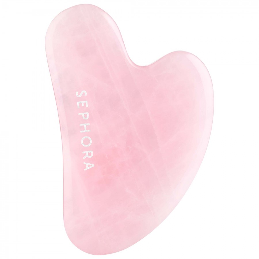 A facial gua sha made from rose quartz stone to massage and visibly sculpt your face and neck.