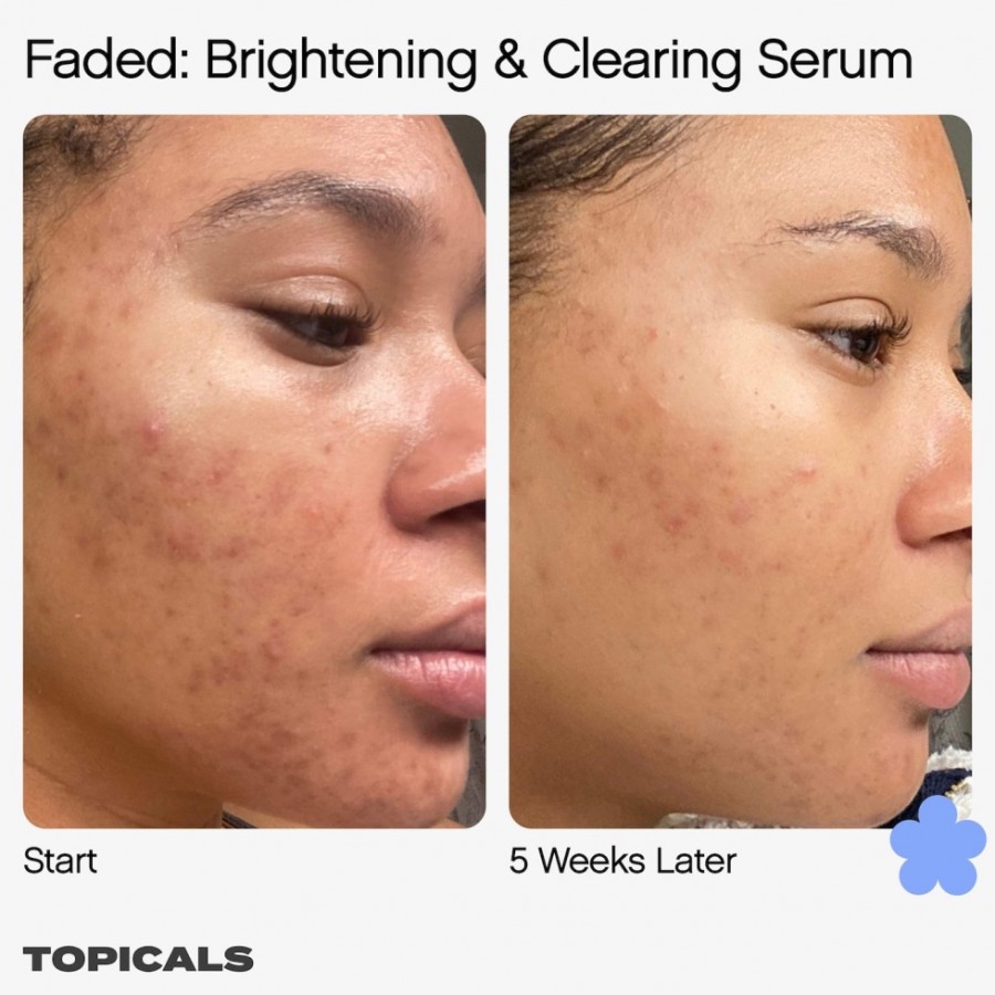 A hyperpigmentation-safe serum that visibly reduces stubborn discoloration, post-blemish marks, scars, and spots—for all ethnicities and skin shades. Visibly fade stubborn post-blemish marks, scars, dark patches, discoloration, and uneven skin tone resulting from breakouts and sun damage with this dermatologist-tested serum. Gentle enough for daily use, it produces visible results in as little as two weeks and is safe for all skin tones and ethnicities.